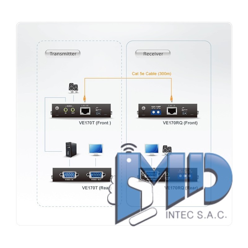 Receptor Cat 5 VGA/Audio con compensación de imagen (1280 x 1024 a 300 m)