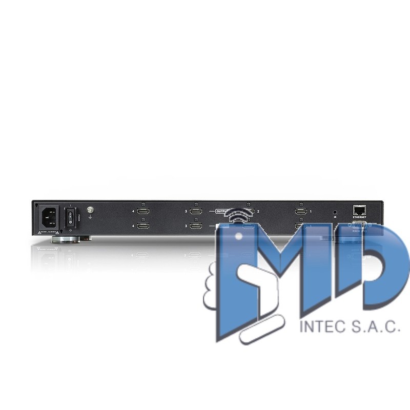 El VM6404H es una solución ideal para aplicaciones que requieren varias pantallas HDMI con diferentes fuentes HDMI que necesitan instalarse convenientemente, como por ejemplo para representaciones escénicas, aulas digitales, salas de videoconferencia y cualquier instalación que requiera informes en tiempo real.
